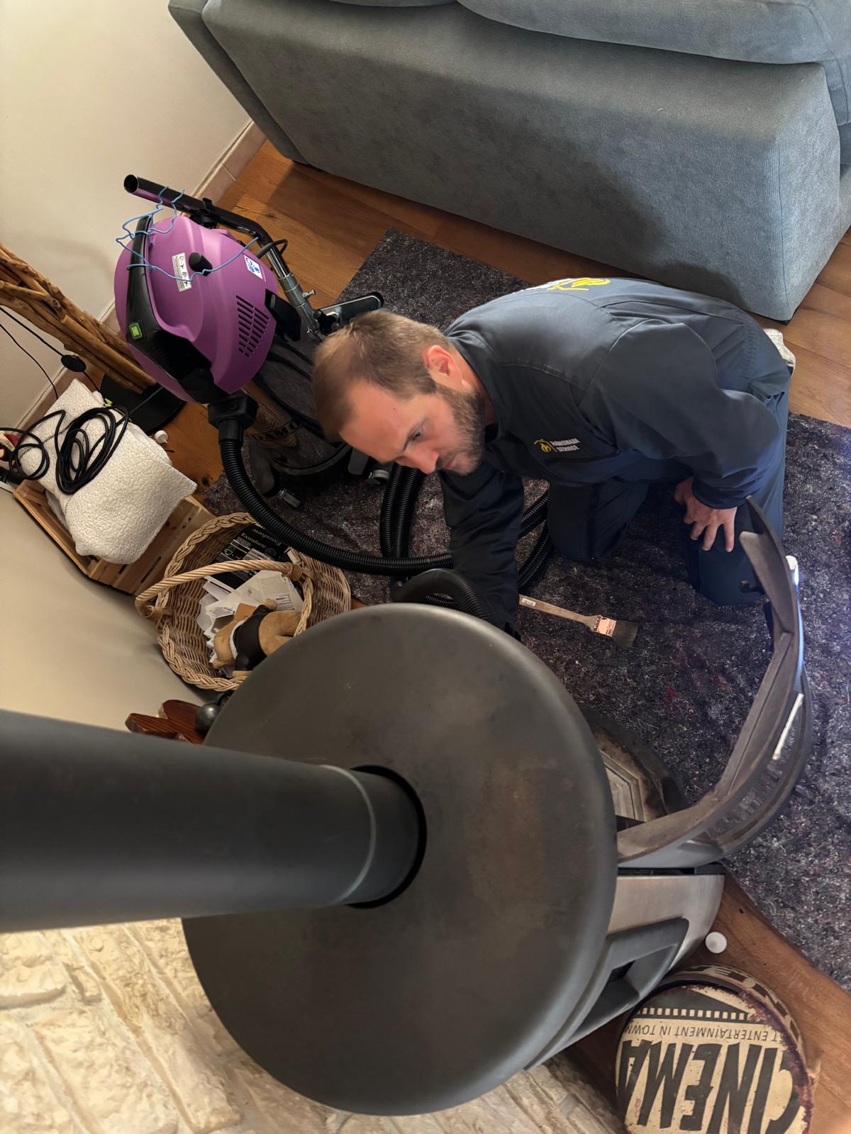 Entretien régulier avec ramonage complet, pour une combustion propre, un meilleur rendement et une consommation réduite.